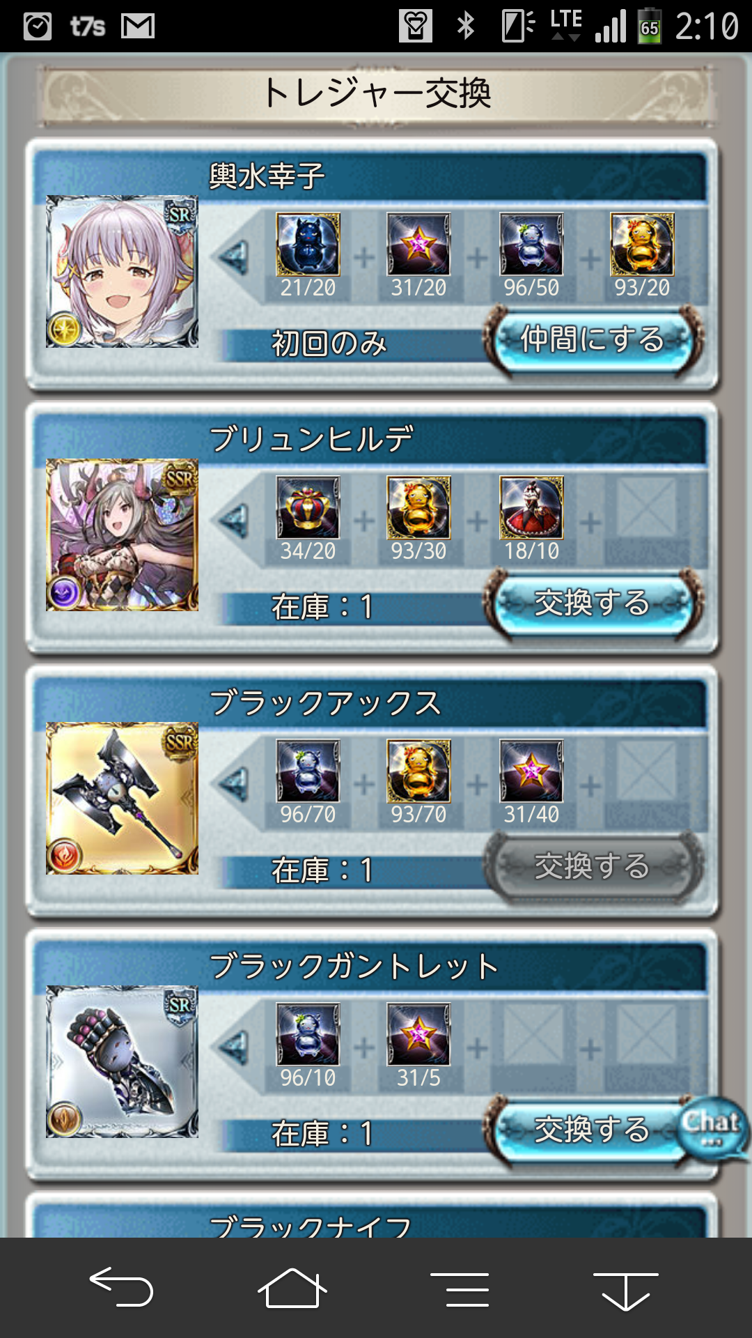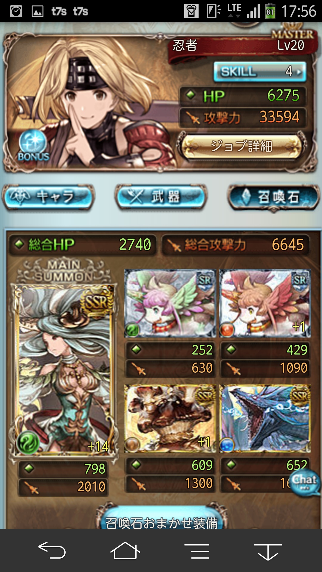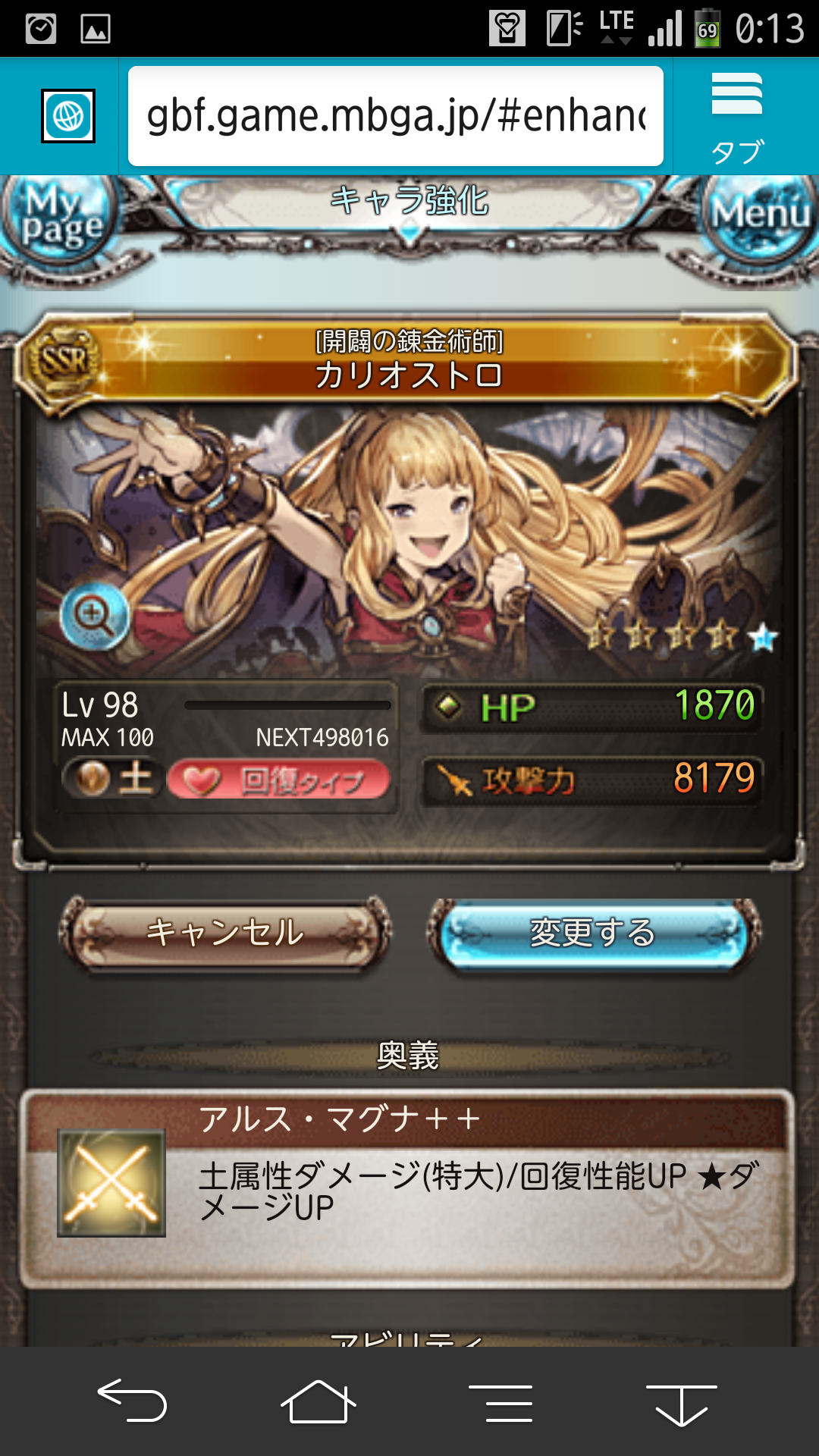そういえば上限解放されてたなぁと思ってやってみました。 まだ解放されてから間もないので詳細は伏せますが、 上限解放クエストは全てゲストキャラにソシエを迎えて進みます。 ストーリーはユエルの過去にまつわる話なので、 このイベントを見るとファンが増えそうですね。 全ての戦闘が主人公、ユエル、ソシエの3人で進みます。 1回目 2回目 3回目 戦闘の難易度はかなり低めです。 ユエルのレベルを80まで育成しているという前提条件で見れば、 特に問題になることはないかと思います。 んでもって、無事上限解放。 ビジュアルが一気に可愛くなりました。 ついでにエロイ。 本当に良い脇とフトモモ。 運営さんは本当に良い仕事をしたと思います。 めっちゃGJ! 上限解放に必要なアイテムはこんな感じ。 こちらも特に問題にならず無事限界突破。 レベル100になるとスタメン入り確定しそうな性能になるので、 カリオストロがカンストしたら次はユエルですねー。 95で強化されるスキルも協力なので まずはそこを目指して育成していきたいですね! カニ漁飽きた。 カニイベ、いろいろこってるのは良いんですけど、 正直ストーリーがネタ過ぎて辛い。 可愛い女の子も出てこないので、ウチには辛いとです。 貢献度300万は到達したので、 あとは金賞を300集めるのみ。 残り40切ったので明日には終了かなと。 そんなわけでそろそろ止まっていた武器の強化に向けて 計画を練っていこうかなという次第です。 武器が比較的揃っている風か、 武器はまだ中途半端ではあるものの マグナ石が3凸出来てる水か悩んだのですが、 結局、アンノウンがしっかり揃っている風を まずは完成させる 方向で動いていこうかと。 石についてはアナト3凸がカニ漁前に完成出来たので、 残りはマグナ攻刃のスキル上げですね。 現状のスキルはこんな感じ。
