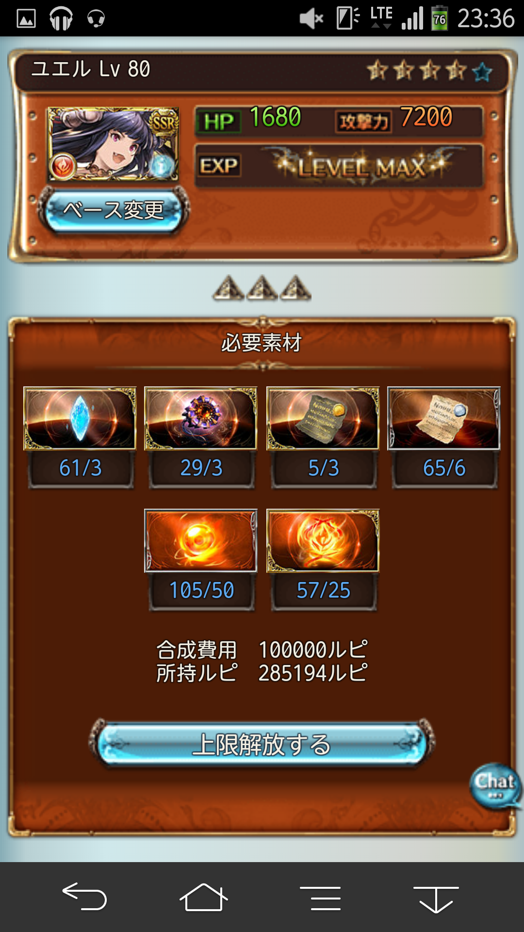 先日、ユエルのレベルが80になったので、