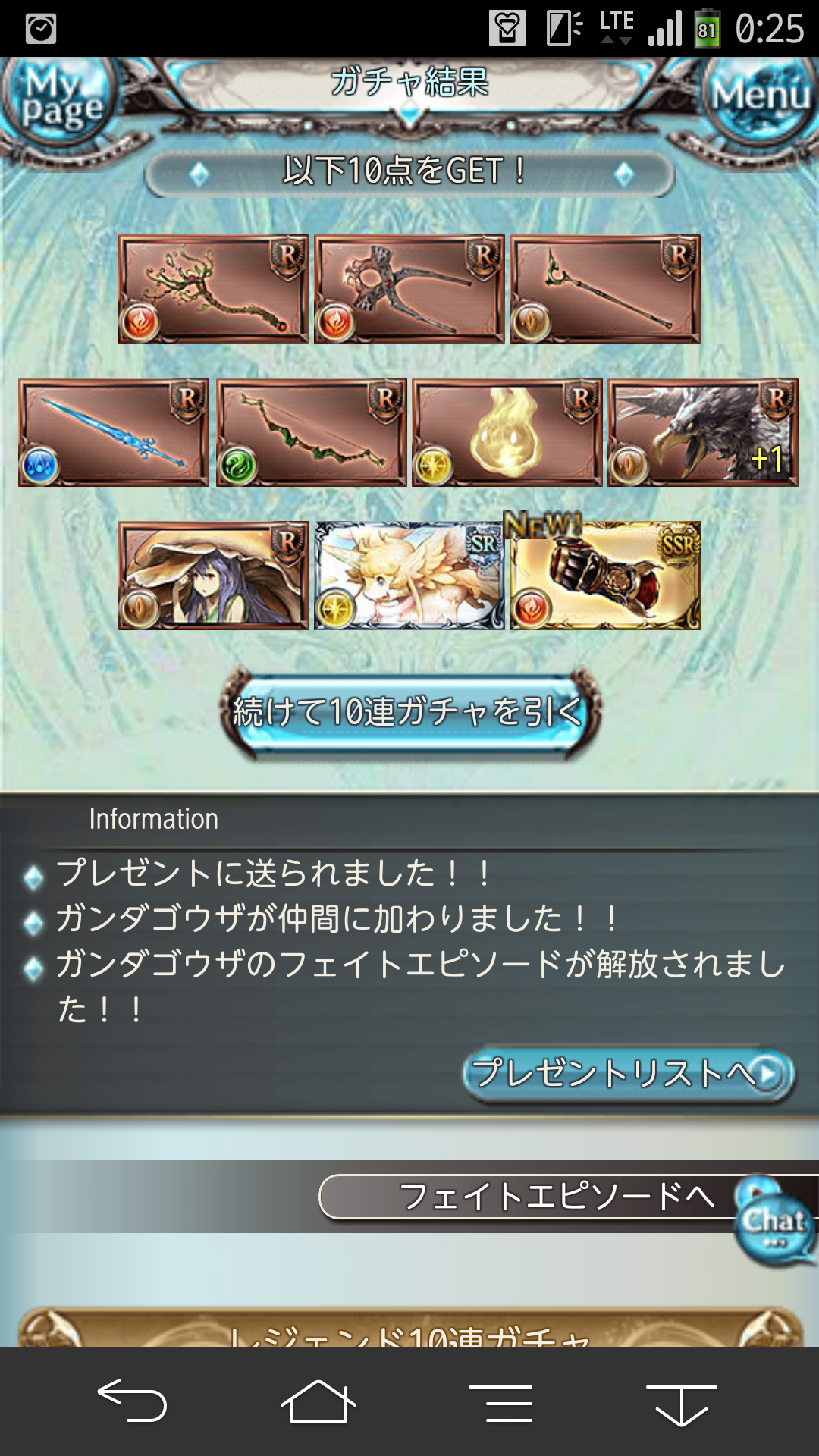上限解放については書いてませんが、 ボルトマグナが3凸できて、 レベルも100までいけたこともあって、 戦力的にはかなり上昇したのではないかと。 スキルレベル7くらいまではSR食べさせて、 残りはSSRのスキルレベル2を食べさせるのが 一番効率良い気がしますね。 あとこのあたりまでくると そろそろバハムート武器のSSR化も視野に入れたいところですね。 まあ、まだマグナガントレがあと11個いるので、 先はまだまだ長いですけどね。。。 でも、こうやって数字化してみると ゴールが見えてきてテンション上がりますね。 がんばろっと! とりあえずガンダゴウザ教にウチも入信させられました。 いつか誰しもが通る道ですが、やはり微妙にやるせない気持ちになりますね。。。 それはともかく。 結構時間かかりましたが、ようやくカリオストロがカンストしました。 前回上げた時は99がカンストだと思ってたんですよね。お恥ずかしい。 カンストするとフェイトクエストにカリオストロ倒滅戦が出現します。 十天のイベントみたいにカリオストロと戦うのかと思ったら、 そういうわけではなく。 カリオストロの過去にまつわるエピソードになります。 みんな昔はいろいろあったんですねー。 クラリスの所属する錬金術師協会だったり、星の民だったり。 てか、ソロでそれを追っ払えるカリオストロマジパネェ。 ボスはみんな毎日ぼこぼこにしてるはずのアドウェルサ。 強化版ではあるので光属性のやつよりは結構強いですが、 ここまでたどり着いてるレベルであればちょっと面倒なくらいで 大して問題にはならない程度の強さですかね。 そして、戦闘に勝利すると・・・ ファンタズマゴリアが++になって全体化しました。 これまでの努力が報われた瞬間ですね。 これでまた一歩上級者に近づいた! かもしれないですね。 まだまだ先は長い・・・