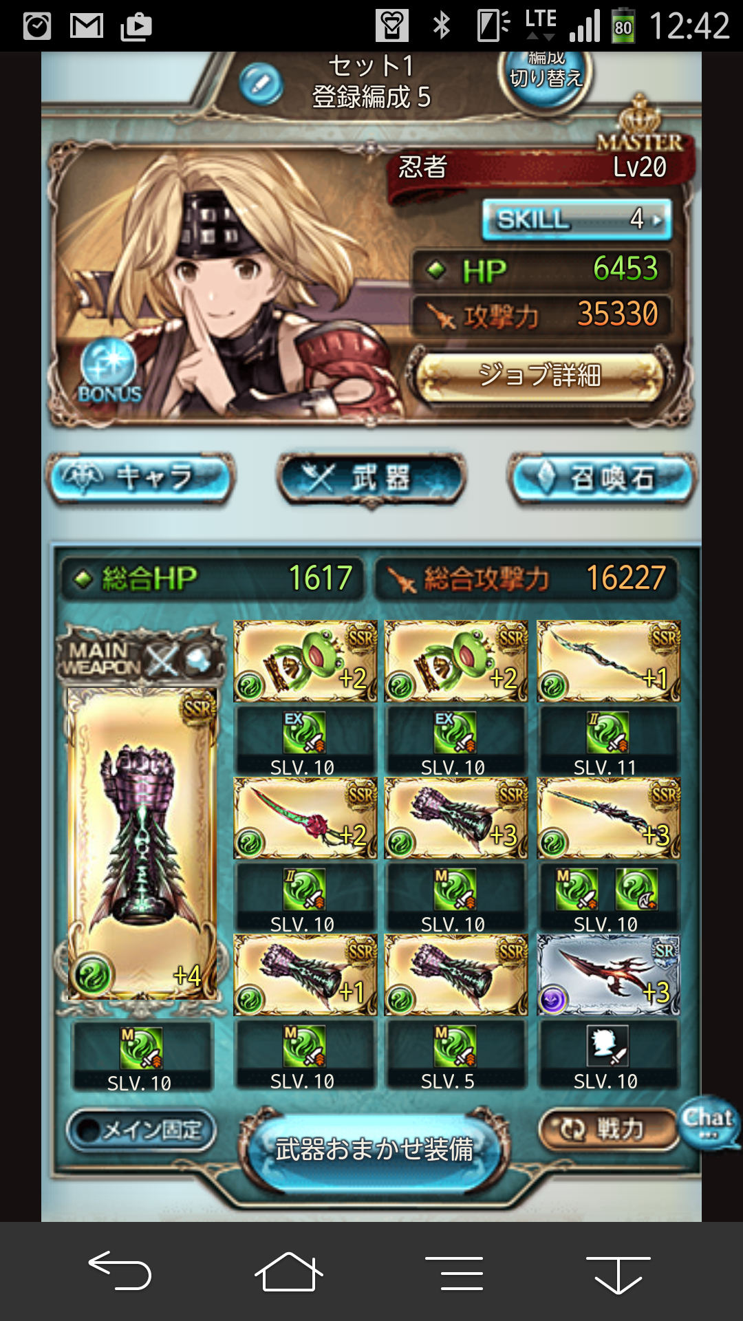 武器で完凸出来てるのは蛙ベル2個と四神武器だけ、 それ以外はまだ中途半端なままです。 プレゼントボックスにたまたま引いたエターナル・ラブがあるので、 将来的にはドラゴンスレイヤーと入れ替えたいところです。 武器のスキル上げはマグナ武器をメインに 上限解放していきながら上げていきたいんですけどねー。 なかなかドロップしないんだから困ったもんです。 まぁ、こっからは地道に根気強く上げていく次第です。 がんばるんば! スレイヤーズからどっぷりアニメにはまったウチにとって 最高にテンションのあがったイベントでした。 しかしながら肝心のアンノウン武器である 光の剣とブラスト・ソードですが ひくくらいドロップしませんでした。。。 どうにかブラスト・ソードは1個ドロップしましたが、 それ以外はさっぱりでしたね。 結局、光の剣が1凸、ブラスト・ソードが2凸と中途半端な結果に;; 以前のスト4イベでの水アンノウンも2凸だったので、 出来れば3凸したかっただけに、 結構残念な結果になってしまいました。 まぁ、代わりに四天刃が三凸出来たので、 十天周への第一歩は踏めたのかなと。 まぁ、必要アイテムが全然たりないんですけどね。 ひとまず、スレイヤーズイベントお疲れ様でした。 次のイベントまでの間で 少し武器のスキル上げをやったいこうと思います! |